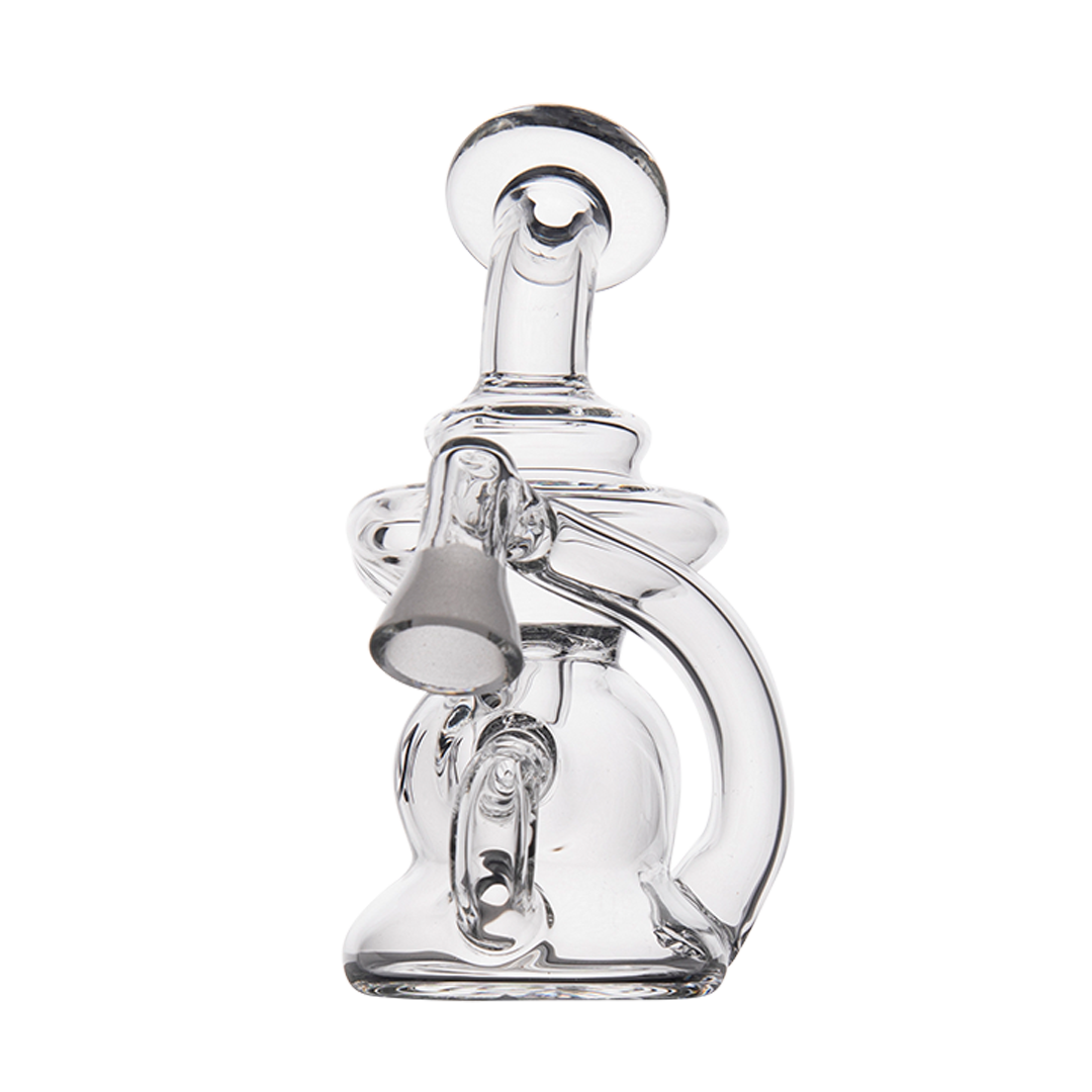 The versatile female spout caters to most circular tip vaporizers, seamlessly enhancing your vaporizer pen's functionality. Despite its small stature, the rig ensures substantial, flavorful hits with little drag through its multiple filtration tubes and dual-intake recycler mechanism. This innovative design guarantees a splash-free, pleasant vaping session.
